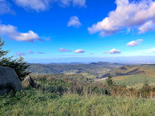 Statt - wie bei mir schon beinahe Tradition - im Herbst noch einmal ein paar freie Tage für Erkundungen im Handbike irgendwo in Deutschland zu planen, verbrachte ich fast den gesamten Monat Oktober im Nordschwarzwald. Während meiner (regulären) Reha in der Heinrich-Sommer-Klinik des Berufsförderungswerks in Bad Wildbad nutzte ich die behandlungsfreie Zeit für Handbiketouren und Rollispaziergänge. Das oft wesentlich anspruchsvollere Streckenprofil dieses Mittelgebirges setzte mir dabei auf meinen Unternehmungen im Handbike viel stärker konditionell zu, als ich es erwartet hatte. Wenigstens eine dieser Aktionen war ziemlich grenzwertig. Dagegen gefiel es mir auf dem Baumwipfelpfad mit dem barrierefrei berollbaren Aussichtsturm richtig gut - kein Wunder bei den spätsommerlichen Temperaturen weit über 20°C an diesem Nachmittag.